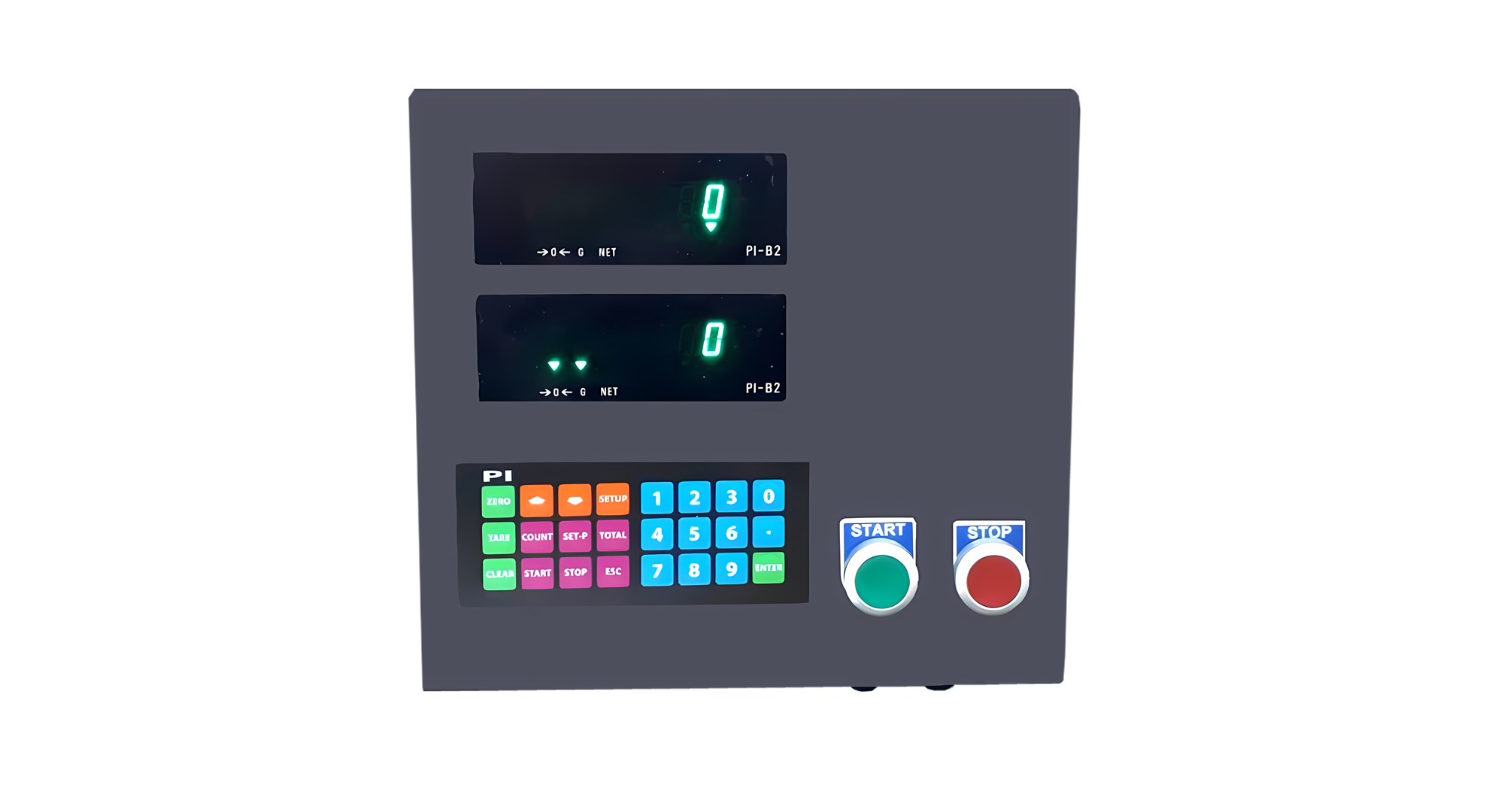 มาพร้อมหน้าจอ VFD จำนวน 7 หลัก สูง 1.3 ซม. จำนวน 2 แถว แสดงข้อมูลน้ำหนัก จำนวนถุง จำนวนครั้ง และน้ำหนักรวม รองรับการทำงานเป็นเครื่องชั่งผสมคอนกรีต และระบบชั่งบรรจุทั้งแบบน้ำหนักสุทธิและน้ำหนักรวม มาพร้อมพอร์ต RS-232 และพอร์ต OUTPUT รองรับไฟ 220V AC / 24V DC จำนวน 4 จุด (เพิ่มได้สูงสุด 8 จุด) ใช้พลังงาน 220V AC 50Hz ตัวเครื่องผลิตจากพลาสติกแข็งแรง ขนาดกะทัดรัด เหมาะสำหรับงานอุตสาหกรรมที่ต้องการความแม่นยำและทนทาน
